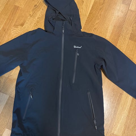 Regnjakke fra Vertical i størrelse 2XL, beige og mørkeblå med gule detaljer.