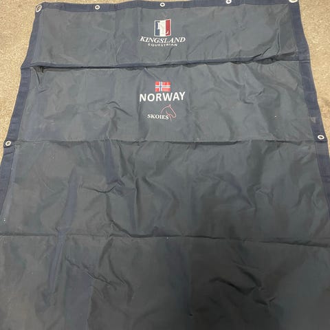Kingsland stallgardin med metallmaljer langs kantene. Vannavvisende. Brodert logo øverst.
