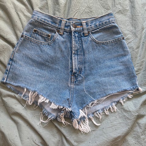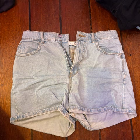 Dr. Denim shorts i blå bomull, størrelse XS med midjemål W28, til dame.