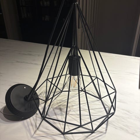 Svart pendellampe fra IKEA, pære medfølger ikke.