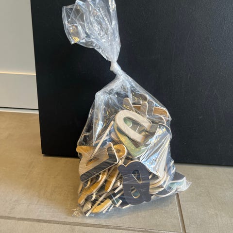 Magnetisk tavle med svart ramme med bokstaver og tall