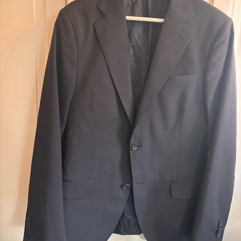 En klassisk overdel med en brystlome, to lommer foran og to innerlommer. Den har fire knapper på hvert erme og den ene knappen på høyre erne er delt i to dessverre, men det synes nesten ikke.