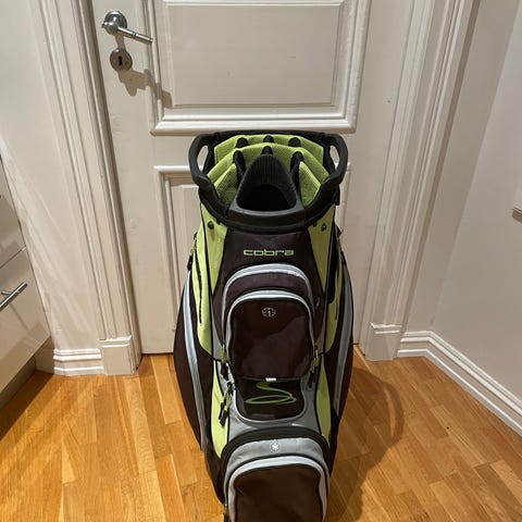 Trallen har tre hjul for god stabilitet, praktisk holder for scorekort, ball og tilbehør, samt nett til oppbevaring. Passer de fleste golfbager.