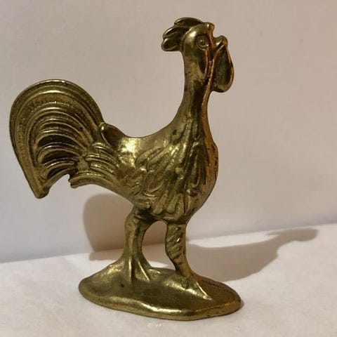 Har en skinnende, gyllen finish. Høyde 4,5 cm