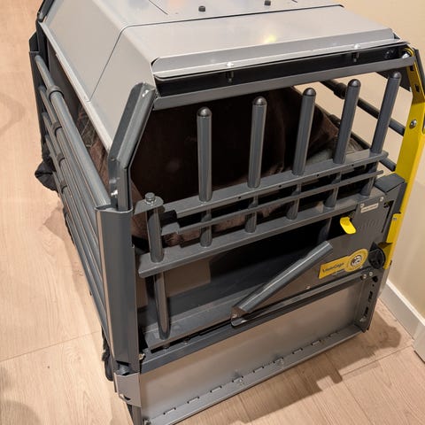 Det er noen riper etter valpetenner på døra og sidene. Mangler nøkkel.