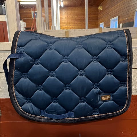 Vanskelig å få fargen på bilde, men den er typ rød-orange. Vises best på hesten