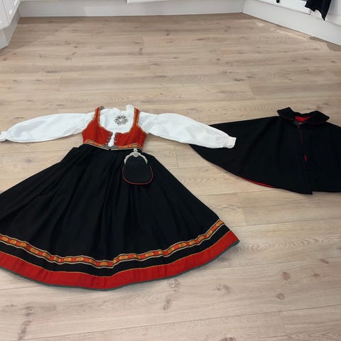 Vestfoldbunad selges komplett med skjorte, sølv og cape.