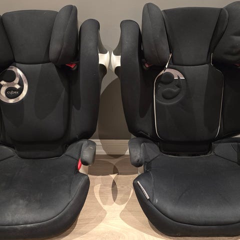 CYBEX barnesete med isofix, mulighet for å ta av ryggen. Setet er designet for bruk i bil og har en nøytral farge.
