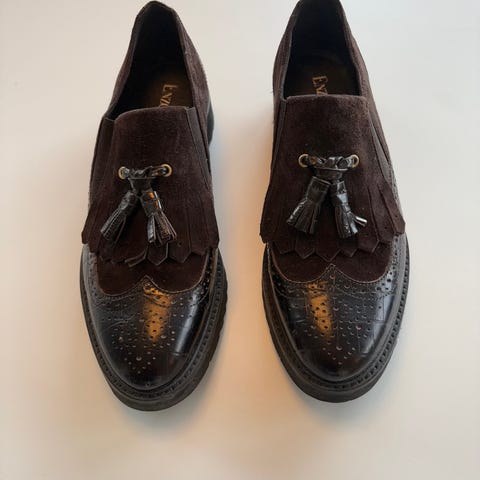 Italiensk håndverkssko- flettet skinn- str 38,5