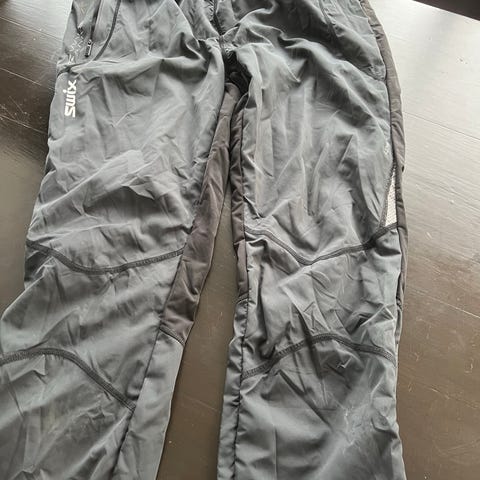 Sort, tynn og lett treningsbukse str M med strikk nede i bena