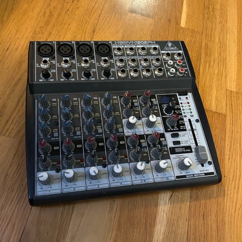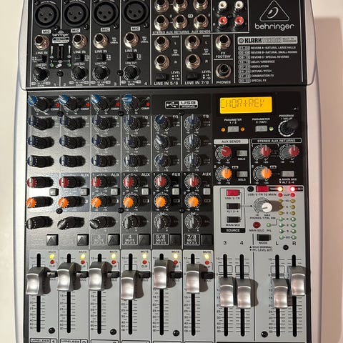mikser, mixer, lydmikser, Behringer, Xenyx 802, lydutstyr, studio, hjemmestudio, podcast, streaming, opptak, musikk, DJ, PA, analog mikser, kompakt mikser, fantommating, mikrofon, instrument, lydproduksjon