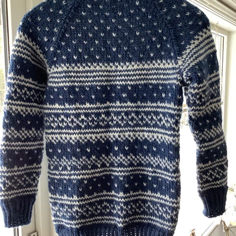 Hjemmestrikket genser i str xl. Den er liten i størrelse så vil si en kort M/L