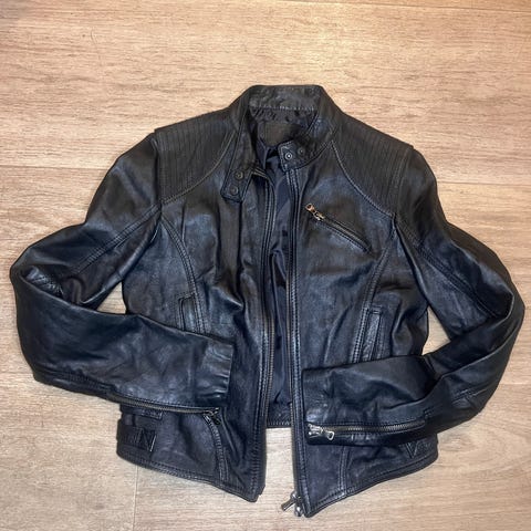 Jakken er foret i semsket skinn på innsiden, noe som gir en eksklusiv følelse og god komfort. Tidløs, men med et tydelig 2000-talls preg – perfekt både til jeans, dressbukse eller over kjole.
