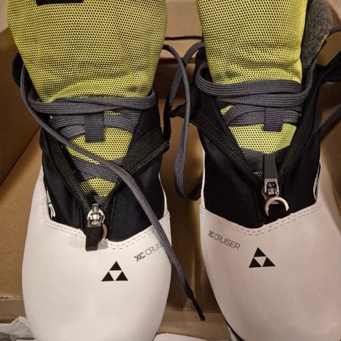 Et par nesten ubrukte langrennsstøvler fra Fischer i str. 44.