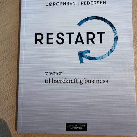 Restart 7 veier til bærekraftig business bok innen fagområdet økonomi og administrasjon. Boken fokuserer på bærekraftige forretningsmodeller og hvordan bedrifter kan implementere disse for å oppnå langsiktig suksess. Inneholder teoretiske og praktiske tilnærminger til bærekraft i næringslivet.