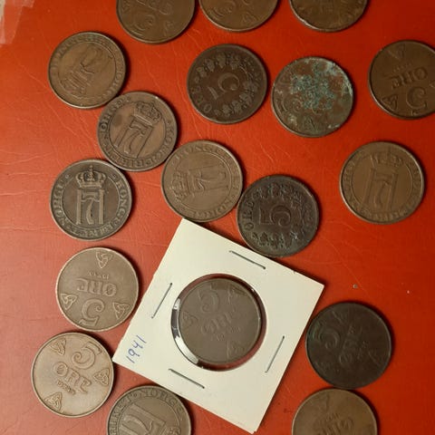 Selger noen sølvmynter, se bilde. Totalt 96 gram.