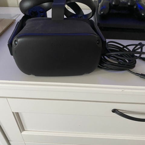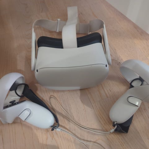 Meta quest 2 128GB selges i fordel for oppgradering, å at den må ha ny ansikt deksel se bilde, derfor selges den billig,,,,den datt av en gang så da jentungen skulle sette den på knak den, så plast bøylen må ny ellers viker alt på denne kjempe bra, ny bøyle er billig å lett å sette opp men vi har nå en nyere modell ,, kan sendes på kjøpers regning kommer i orginal esken så ligger trykt i frakten med den,