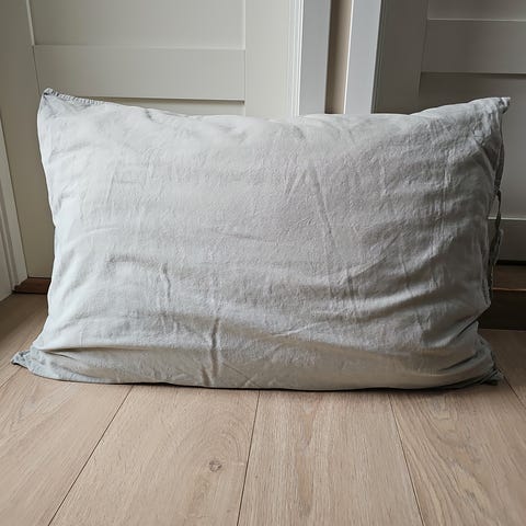 3 hotellputer 70×100 cm, to fra IKEA og en fra Kid, alle med trekk fra Kid. Det lyse trekket har ødelagt glidelås og er litt nuppete, de mørke har kun stått til pynt.