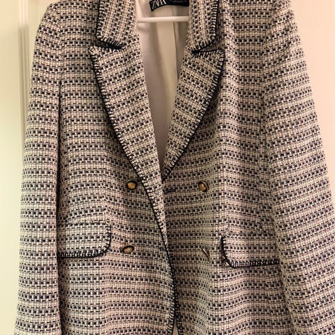 Zara blazer i brun/ camel farge, laget av polyester. Størrelse L, Gullknapper. Som ny