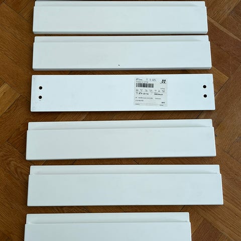 Ventilasjons-beslag for å sikre luftfgjennomstrømming i skap for innebygde hvitevarer. . Hindrer også at større ting faller ned om bakplaten på skapet ikke er montert helt inntil hylleplaten. Fra IKEA, men kan selvfølgelig brukes i andre skap eller til andre ting. Vær så god, finn fram kreativiteten 😀 Beregnet til 60 skap (56.3 cm lange)