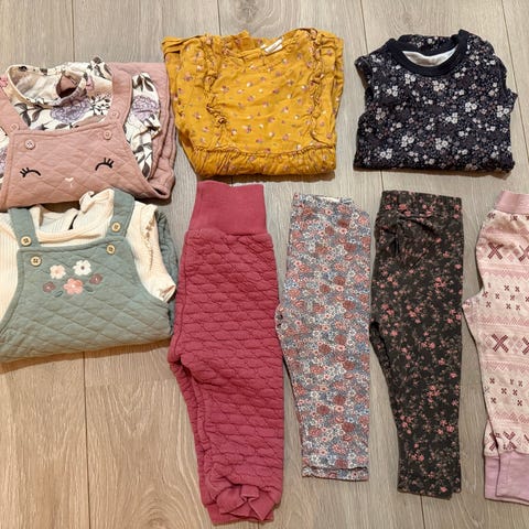 Selger en klespakke i størrelse 74. Klærne nederst på bildet kan også følge med om ønskelig, det er noe ull med flekker (ingen hull)
