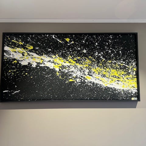 Maleriet fungerer svært godt som blikkfang i moderne interiør, stue, kontor eller entré.