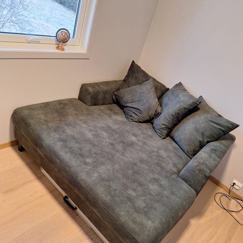 Daybed fra IKEA i Fridtuna beige selges. Daybeden har vært en del av en sofa og har derfor hull til sidestøtte/sideplate på ene siden (se bilde) Denne kan følge med dersom ønskelig. Da er det også mulig å kjøpe en ekstra sidestøtte/sideplate på IKEA og montere på andre siden.