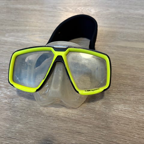 Snorkelsett bestående av maske og snorkel i gul farge.