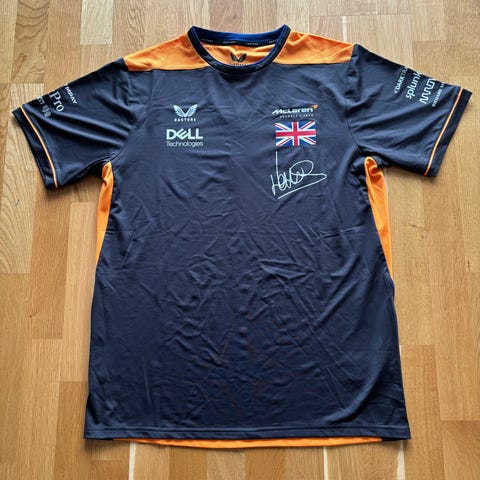 Pen Michael Schumacher Ferrari skjorte selges! Unikt samleobjekt for enhver F1 fan! Flerfarget skjorte med «Schumy» skrevet på kragen