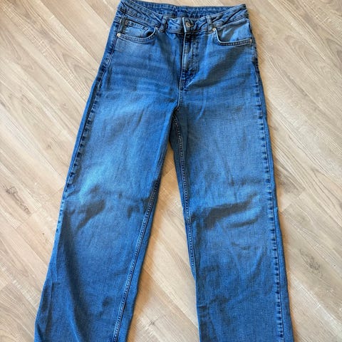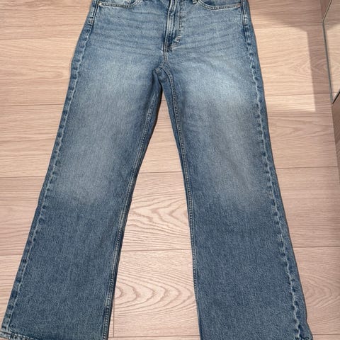 H&M Bootcut jeans i blå denim, størrelse 40 for dame. Jeansene har en bootcut passform.