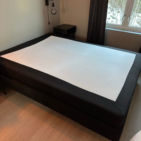 Komfortabel seng i god stand. 150x200 cm. Overmadrass medfølger om ønskelig.