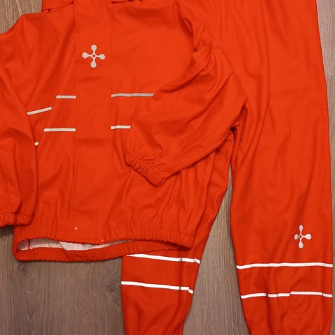 En pakke med tilsammen 7 ytterplagg. Godt brukt alt sammen, noe er slitt, et par hull, mangler strikker i beina på buksa. Se bilder for detaljer. Alt er nyvasket, men noe har misfarging som ikke gikk bort i 40-vask (typisk på knær og rumpe). Det meste i str 98, litt i str 104, se detaljer på bilder. Godt og synlig brukt dette, altså, derfor selges det veldig billig. Alt er brukandes (men det ene hullet burde lappes).