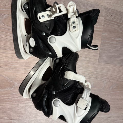 Justerbare Ishockey Skøyter for barn i størrelse 34-37. Skøytene har svart og hvit fargekombinasjon. Justerbare for bedre passform.