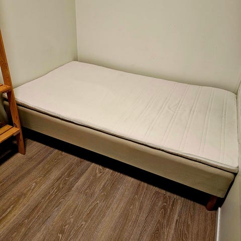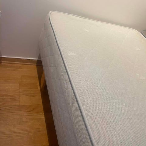 Pent brukt 120-rammemadrass fra IKEA med Svane overmadrass (medium). Kjøpt ny i 2022.