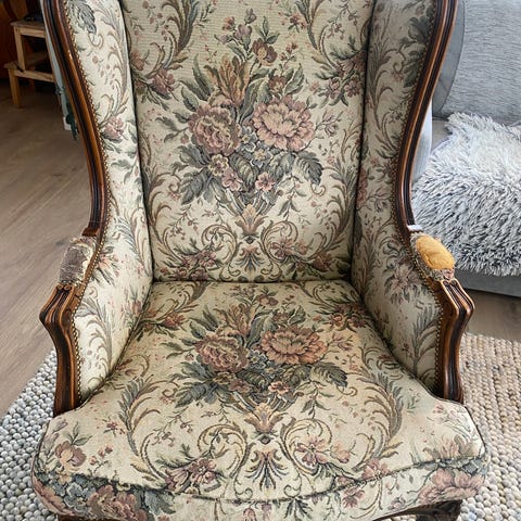 Litt malingslitt på armlener Stoltrekket er heilt men litt nupper på baksiden