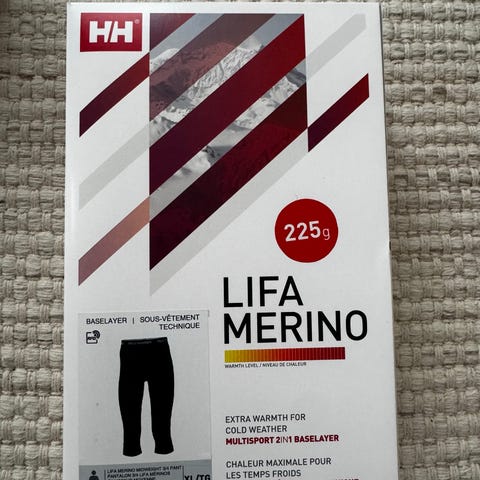 Helly Hansen Lifa Merino baselayer (underdel) i størrelse XL. Designet for å gi ekstra varme i kaldt vær. Passer for ulike aktiviteter innen sportstypen Annet.