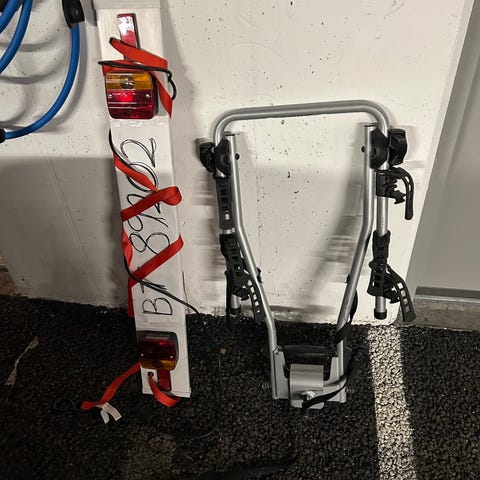 Thule swing away sykkelstativ. Kan KUN brukes med 2 tommers amerikansk tilhengerfeste, ikke på europeisk krok. Plass til flere sykler og svinger vekk fra bagasjerommet slik at det kan åpnes. Følger også med eget stativ for snowboard.