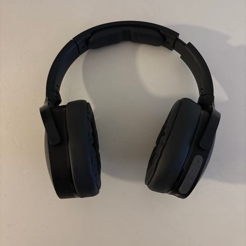 Skullcandy hodetelefoner i grå farge. Over-ear design med polstrede øreputer og justerbar hodebøyle. Trådløs tilkobling med kontrollknapper på øreklokkene. Egnet for daglig bruk og lydavspilling.