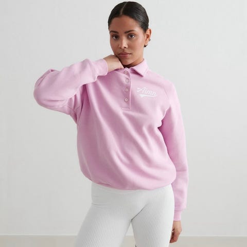 Rød Aimn college genser str M, romslig i størrelse, vil også passe L. Kun brukt et par ganger.