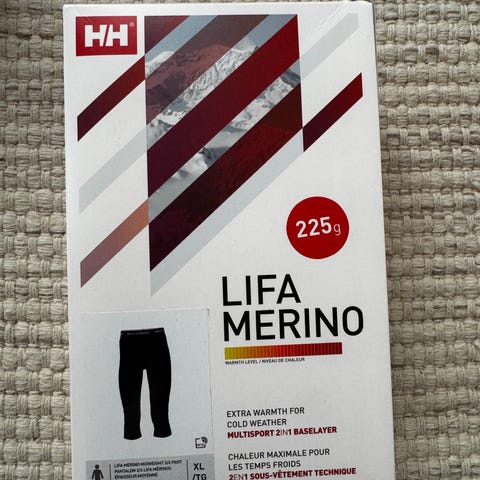 Helly Hansen Lifa Merino herreundertøy bukse i størrelse XL og svart farge. Laget av merinoull, designet for å gi varme og komfort under kalde forhold.