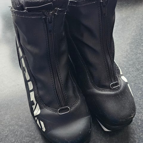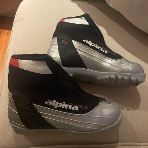 Alpina T8 i svart farge, designet for unisex bruk. Skiskoene har en slitesterk konstruksjon med snøring for god passform.