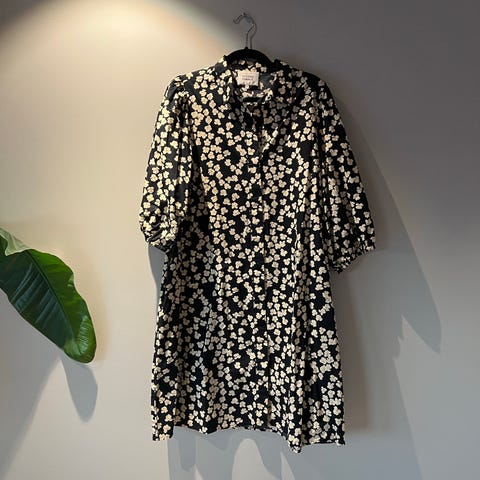 Second Female Hverdagskjole i størrelse M, flerfarget mønster. Kjolen har en feminin passform og er egnet for hverdagsbruk. Innsmalet midje, brystlommer, og lommer på hver side på den nedre delen. Fin kjole som kan brukes både med tykk strømpebukse eller bare legger og sneakers på sommeren. Nypris 1200kr.