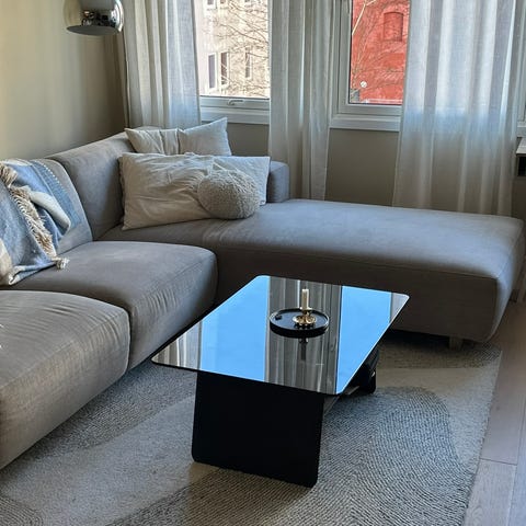 Bordet består av metallramme + plate i glass. Nypris er 2099kr.