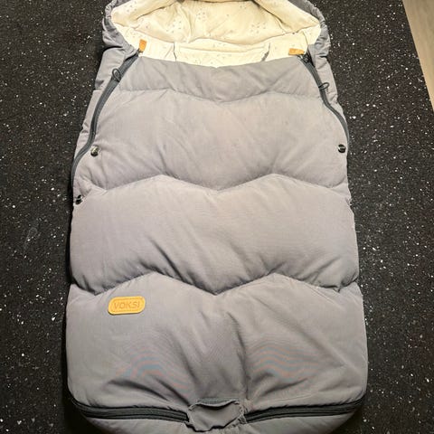 Pent brukt vognpose, passer til mild vinter, vår og høst. Saueskinn til isolasjon i rygg kan følge med om ønskelig. Farge grå. Noe misfarging i foret inne i posen, men dette kan sikkert vaskes vekk om ønskelig.