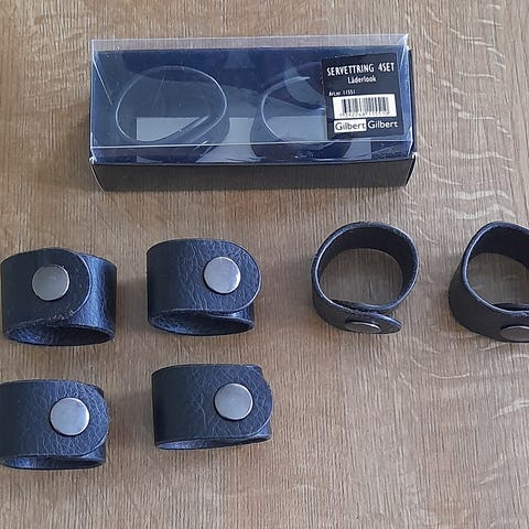 6 stk serviettringer i skinn kjøpt på Kremmerhuset