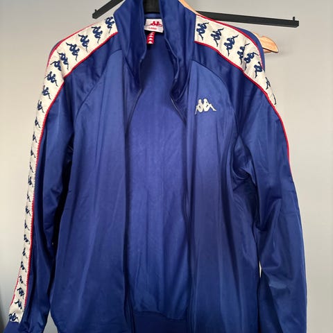 Selger en blå og sort treningsdrakt / sportstrøye fra Kappa. Trøyen fremstår som pent brukt og i god stand. Klassisk Kappa-design med logo på bryst og ermer.