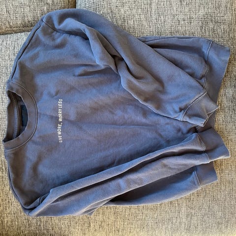 Zara collegegenser i blå farge, størrelse S for kvinner. Genseren er laget av bomull og har et trykk med teksten 'California' på fronten. Brukt en gang. Selges billig. Pris kan diskuteres. Kjøper betaler frakt.