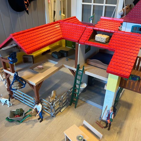 Le Toy Van «Lavender House» dukkehus i lavendel - laget av tre - med flere rom og møbler inkludert. Huset har detaljer som vinduer, dører og innredning som bad, kjøkken, stue og soverom. Alt av møbler og dukker inkludert. Pent brukt!