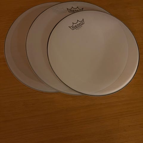 Remo trommeskinn i hvit farge selges. Ikke brukt. Kjøpt på 4 sound. Ta kontakt ved spørsmål!