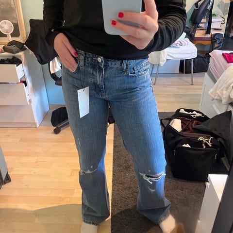 Zara svart jeans, ikke brukt, fremdeles med tag på. Str. 42. Livvidde ca 2 x 40 cm, hel lengde ca 100 cm. Bomull + elastan.